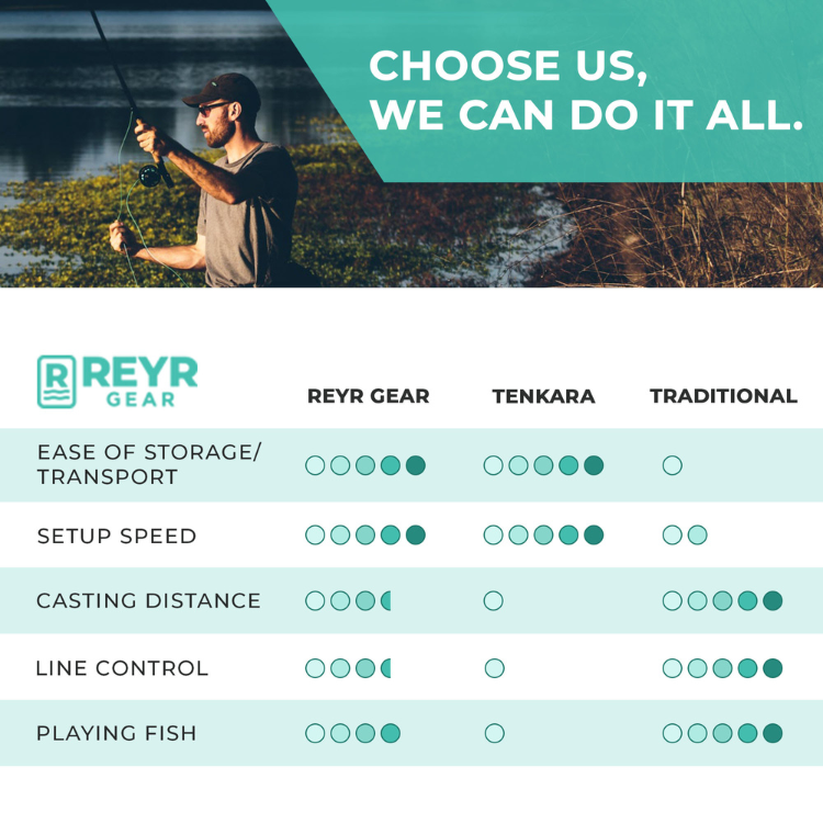 REYR Gear packs small, sets up fast, and fishes big. More portable than traditional rods and more capable than Tenkara, it’s built to get you on the water quicker and keep you there longer.